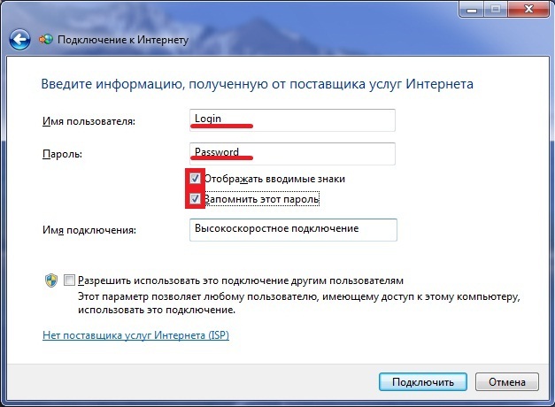 7. Вводим логин и пароль, указанные в памятке пользователя, ставим галочку «Запомнить этот пароль»
